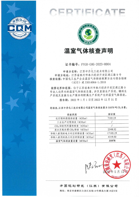 关于温室气体核查证书的公示