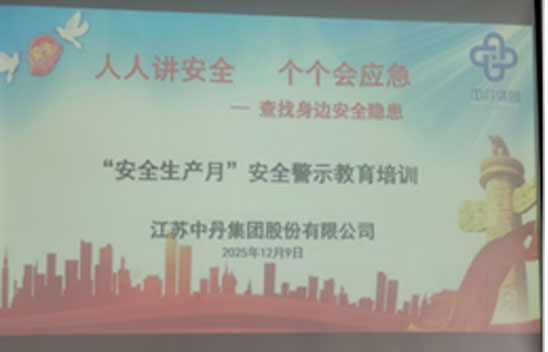 2025年12月是中丹集团第38个“安全生产月”,21日是中丹集团第372个“安全活动日”。集团公司及各成员企业制定了相应的活动方案,围绕“消除事故隐患,筑牢安全防线”为主题开展安全生产月活动;活动期间积极组织开展“警示教育”、“合理化建议”、“能力提升”、“隐患排查”、“风险识别”、“应急演练”等活动;2026年元月6日,召开了安全月总结会议;各项活动均取得了预期的效果。