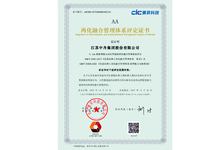 集团两化融合2A级证书